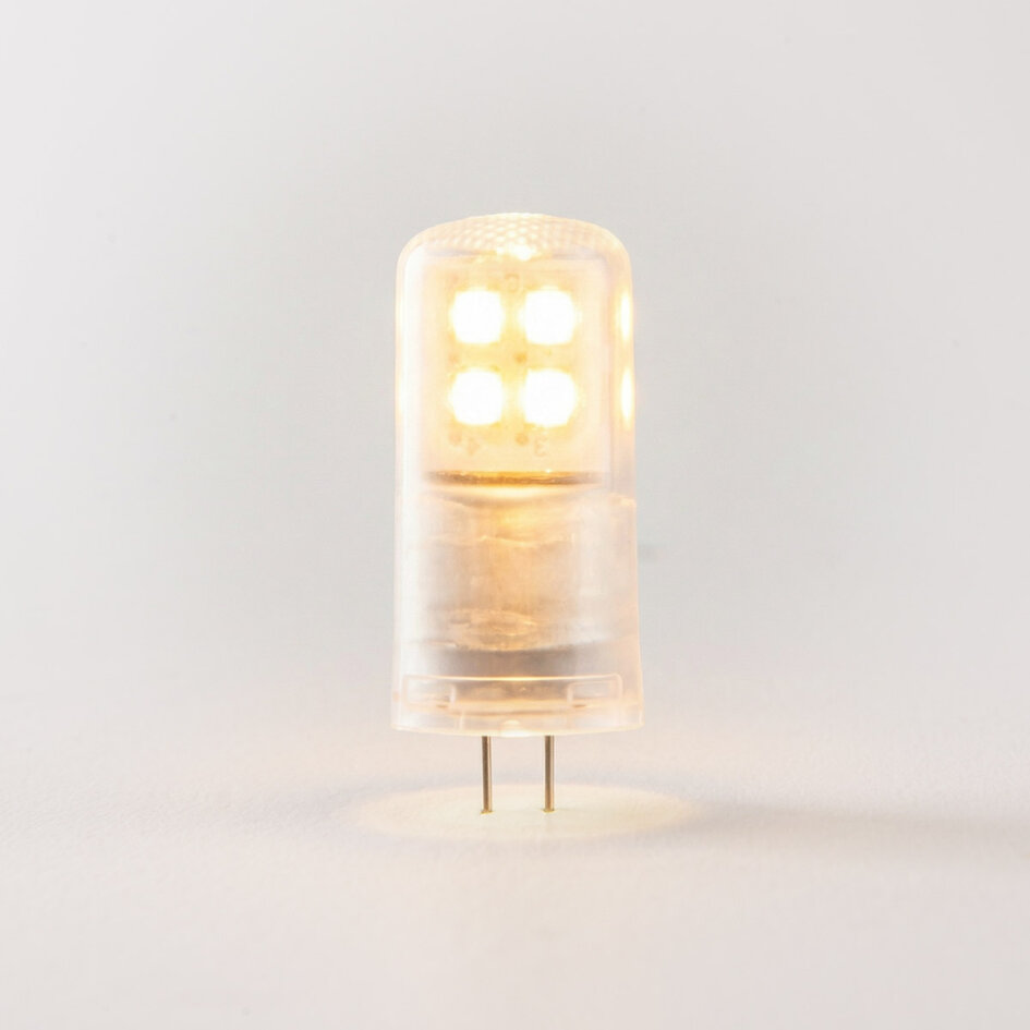 Een G4 lampje is een kleine steeklamp met twee pinnen, geschikt voor compacte armaturen zoals spots, vitrines, wandlampen of decoratieve verlichting. Deze dimbare G4 LED van 2,1W vervangt traditionele halogeenlampjes en biedt een warme lichtkleur van 2700K en een lichtopbrengst van 210 lumen. Dankzij de lange levensduur en het lage energieverbruik combineert dit lampje sfeervol licht met efficiëntie – ideaal voor wie stijl en duurzaamheid zoekt.