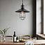 Zwarte hanglamp Kiev voelt zich helemaal thuis in een industrieel of modern interieur. Industriële en vintage woonstijlen zijn steeds meer in opmars en daar speelt deze robuuste hanglamp uitstekend op in. Deze knappe verschijning springt direct in het oog door haar verrassende kap en metalen uitvoering. Het design heeft iets weg van een nostalgische scheepslamp.Tussen de fijne metalen stangen is ruimte voor een E27 lichtbron (niet meegeleverd). Een LED lichtbron met amber glas zorgt voor een optisch zeer decoratief en comfortabel lichteffect. Een mooie LED filament lichtbron komt ook optimaal tot haar recht in deze hanglamp. De open kooiconstructie zorgt voor breed stralende verlichting, waardoor er mooie schaduwen in de omgeving tevoorschijn worden getoverd. Tegelijkertijd wordt het licht op aangename wijze over de hele ruimte verdeeld dankzij de zwarte kap boven de lichtbron. Mooi als hanglamp boven de eettafel of als blikvanger in de hal.