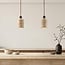 Voro is een verfijnde hanglamp waarin natuurlijke materialen en strakke lijnen samenkomen. De cilinderische kappen van travertin geven de lamp een rustige, minimalistische uitstraling, terwijl het houten detail subtiel warmte toevoegt. Dankzij de compacte vorm en de langwerpige plafondplaat ontstaat een gelijkmatige verdeling boven een eettafel of kookeiland. De donkere plafondplaat vormt samen met de textielkabels een stijlvol contrast met het lichte travertin. Voro is voorzien van twee E27 fittingen (lichtbronnen niet inbegrepen), zodat je zelf kiest voor de gewenste lichtsterkte en sfeer.