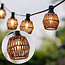 Ben je op zoek naar een prikkabel set met kappen in donkere rotanlook en warm wit tot extra warm wit licht? Dan is deze set een mooie keuze. Je kunt kiezen uit LED lampen met enkel of dubbel filament, wat de lampen een karakteristieke uitstraling geeft en zorgt voor een zacht, sfeervol lichteffect. Filament LED lampen zijn de nieuwste ontwikkeling op LED gebied. Filament slaat een brug tussen enerzijds het gezellige uiterlijk van de ouderwetse gloeilamp en anderzijds het zeer lage energieverbruik en de lange levensduur van de LED lamp. Het filament in de lamp is goed te zien, wat de lampen tot ware blikvangers maakt.