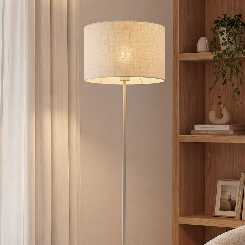 De linnen kap van vloerlamp Avana zorgt voor een warme en zachte lichtverspreiding in de ruimte. Het slanke metalen armatuur in beige geeft de lamp een rustige en tijdloze uitstraling, waardoor hij eenvoudig te combineren is met verschillende interieurstijlen. Dankzij het minimalistische ontwerp komt Avana mooi tot zijn recht naast een bank of fauteuil, maar ook in een slaapkamer of leeshoek. Voorzien van een E27 fitting (lichtbron niet inbegrepen) en een kabel van 1,8 meter met schakelaar voor eenvoudig gebruik.
